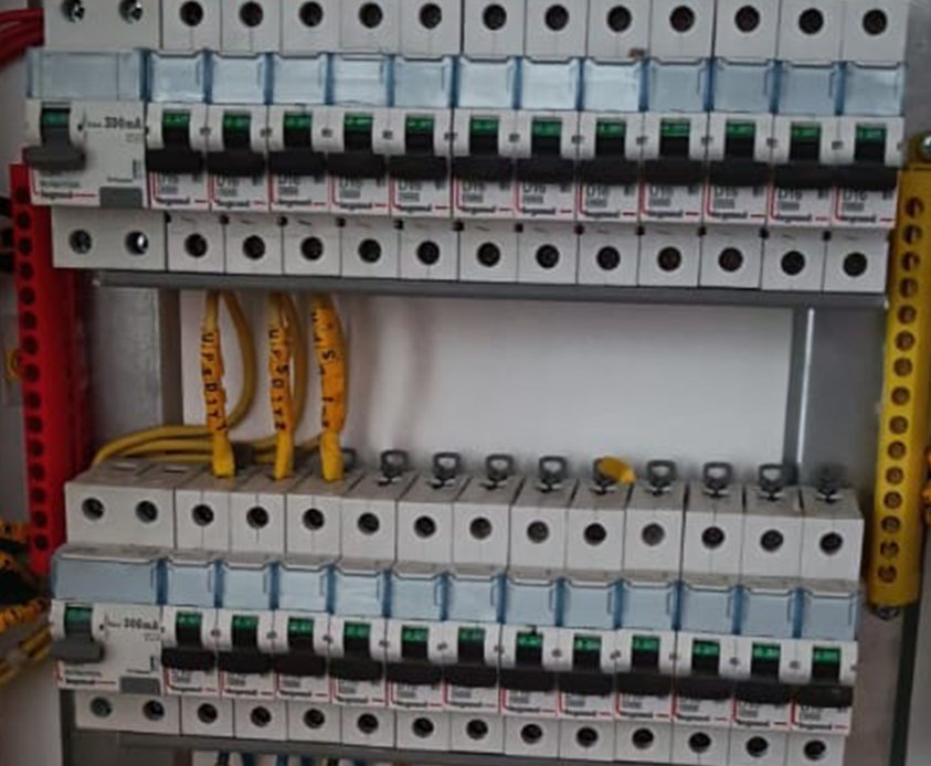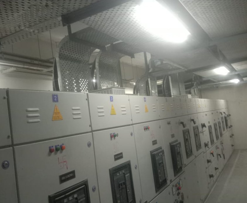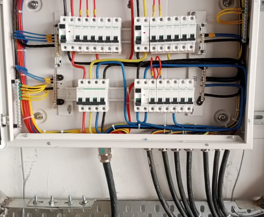 L.T. panel, Distribution Board ,cable tray, earthing, point wiring, cables, lightning, Lightning Arrester.